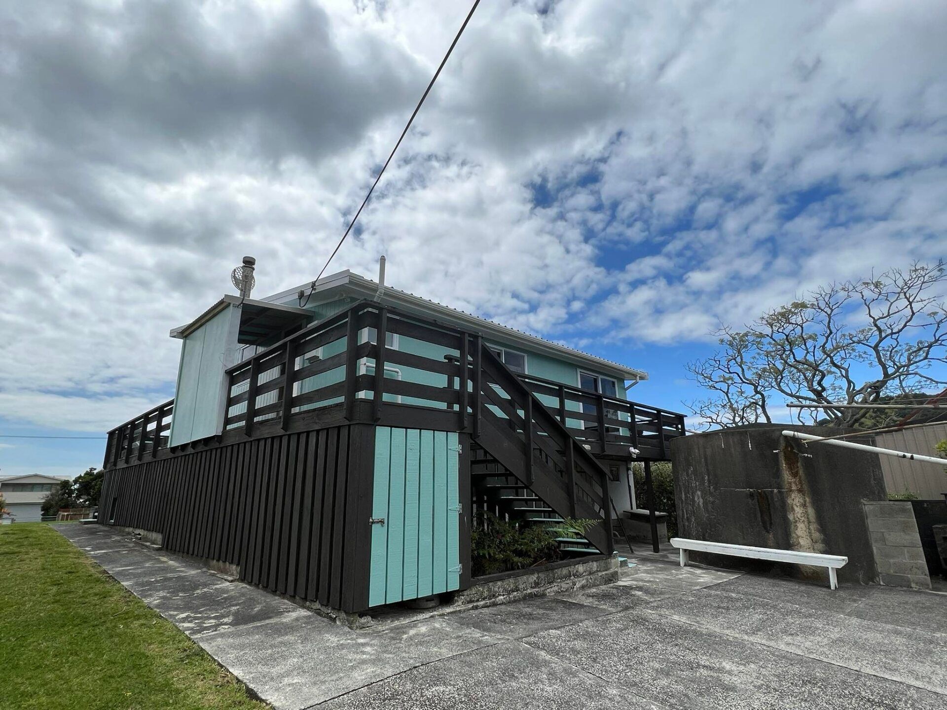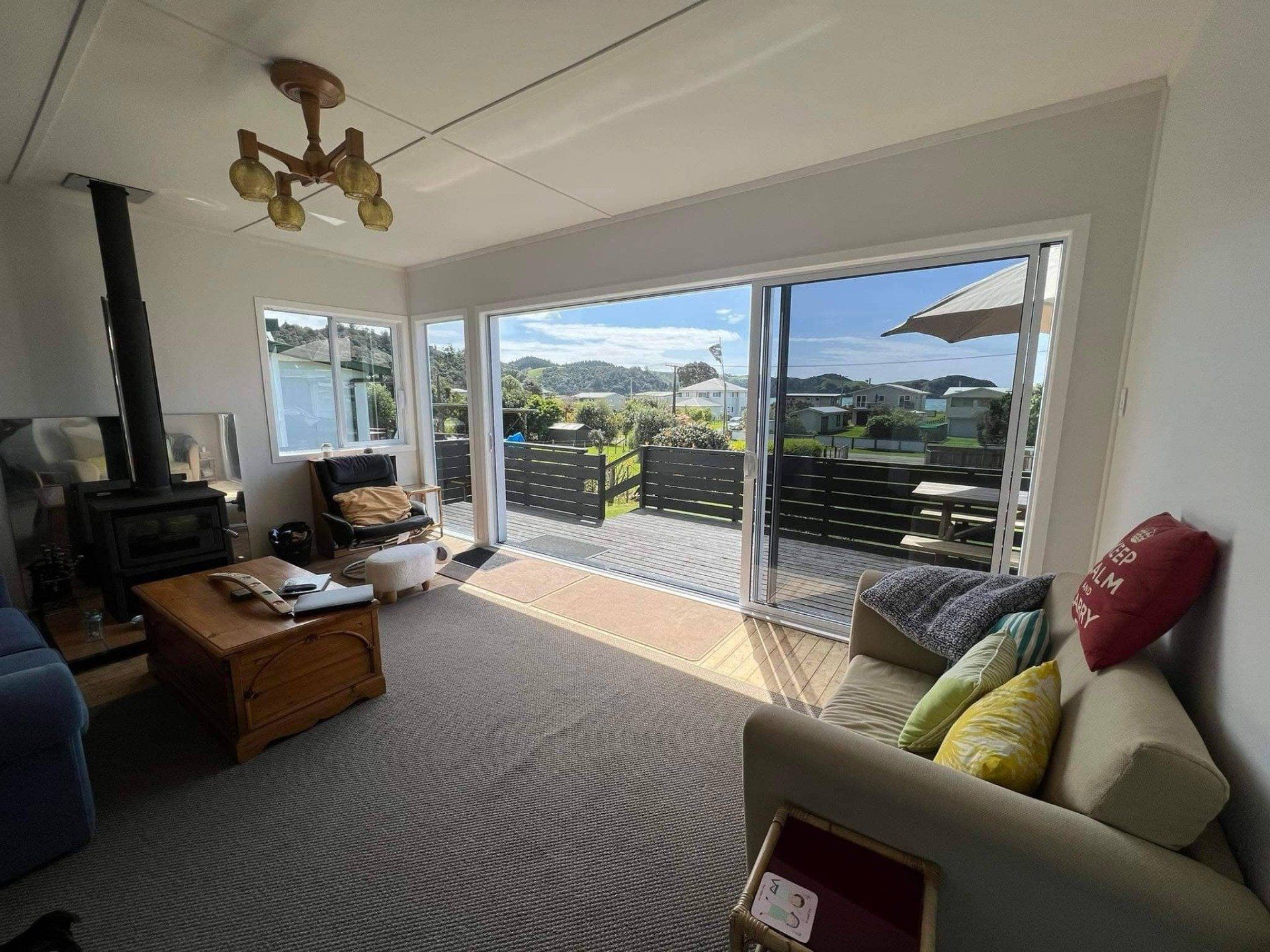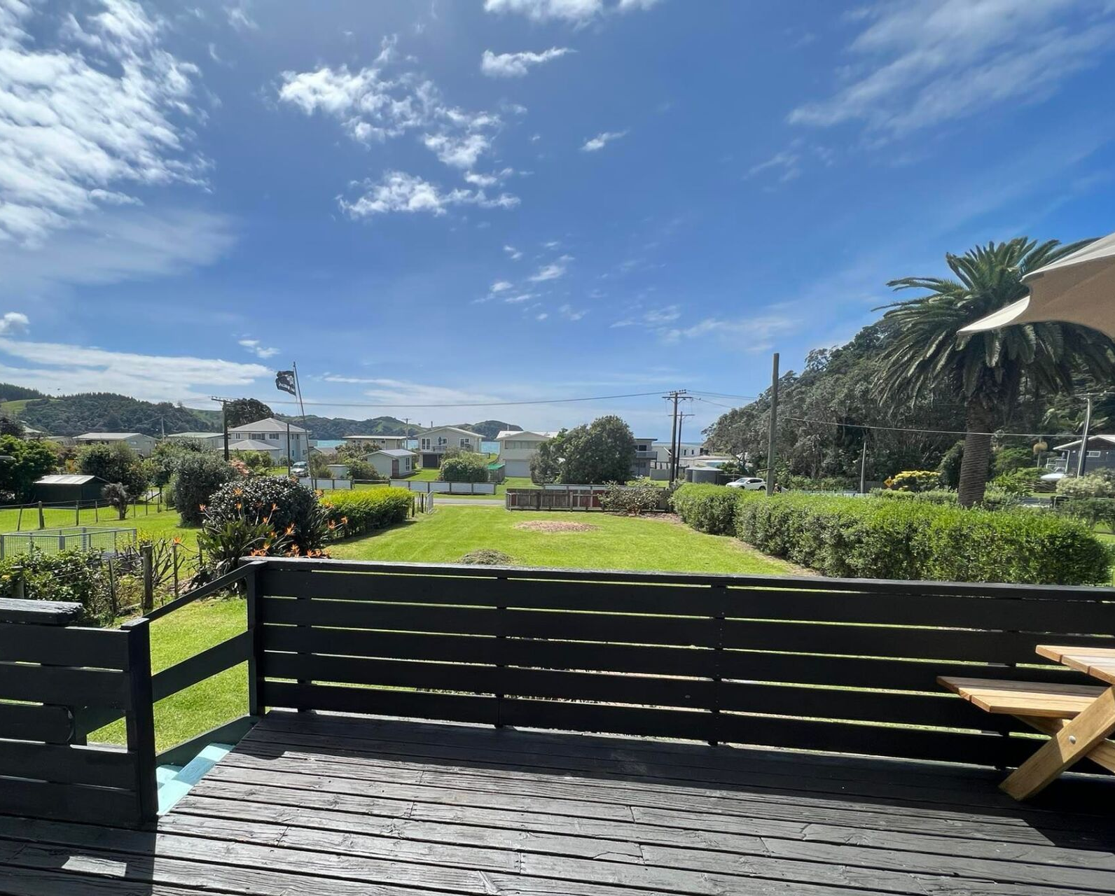 Our main bedroom, located at the front of the property, light and airy just off the lounge. This light room has a double bed with sliding door and private access to front deck. USB socket and wall lights either side of bed. There is also some shelving available for your clothes and nicknaks!